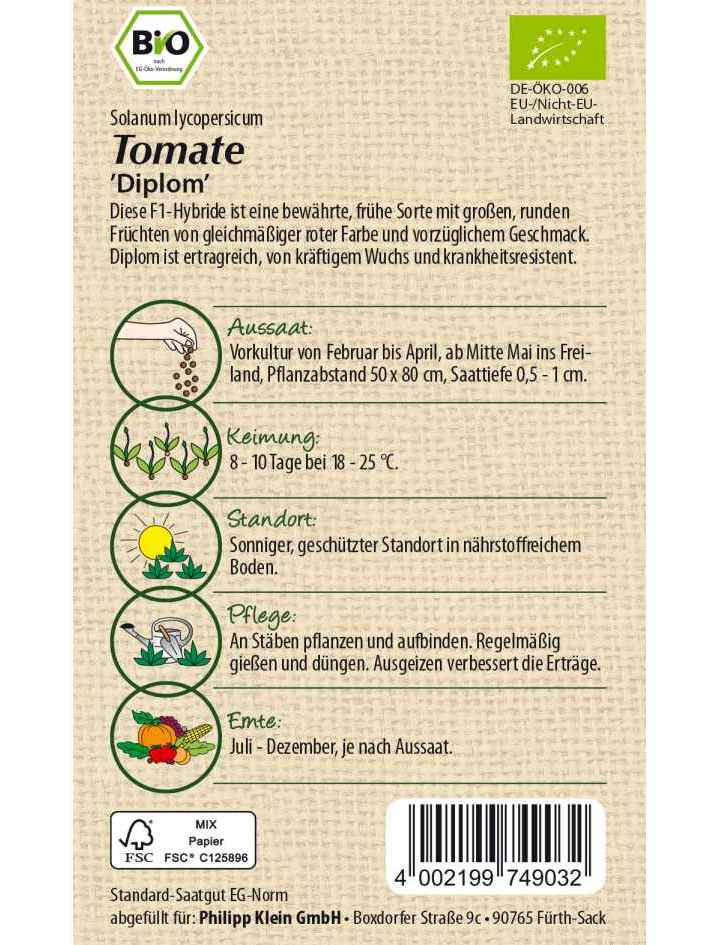 | Bio-Zertifikat | Bio-Saatgut DE-ÖKO-022 |