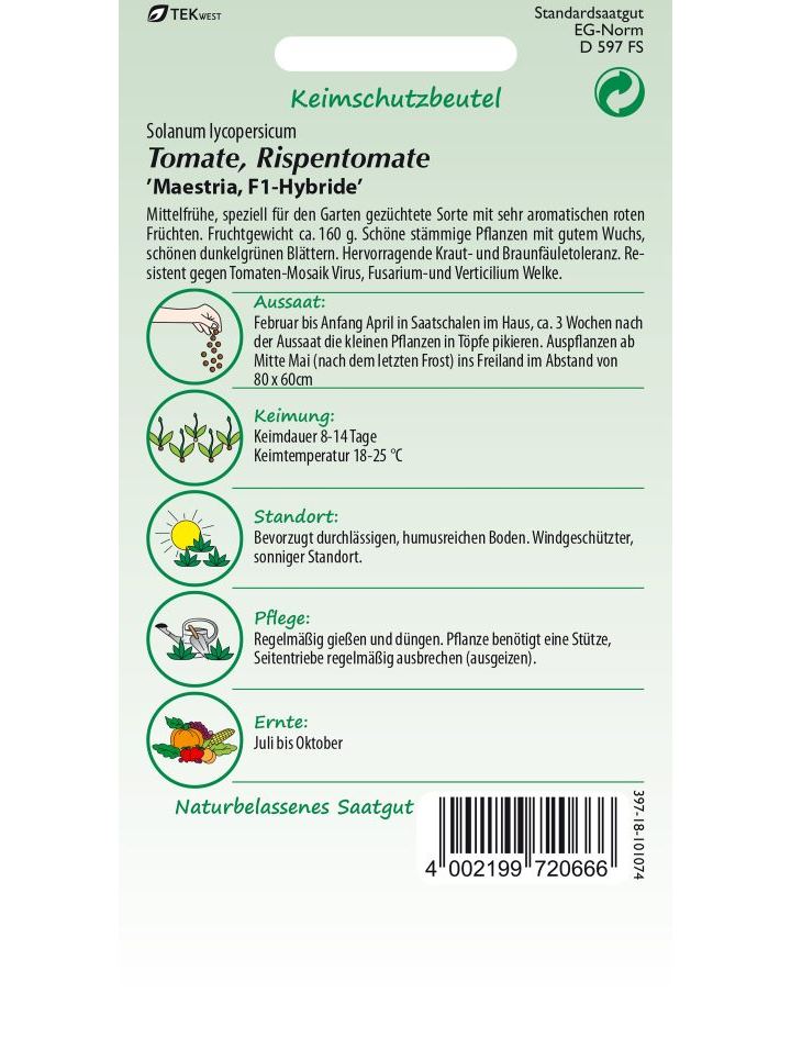 Hervorragende Kraut- und Braunfäuletoleranz. Resistent gegen Tomaten-Mosaik Virus, Fusarium-und Verticilium Welke.