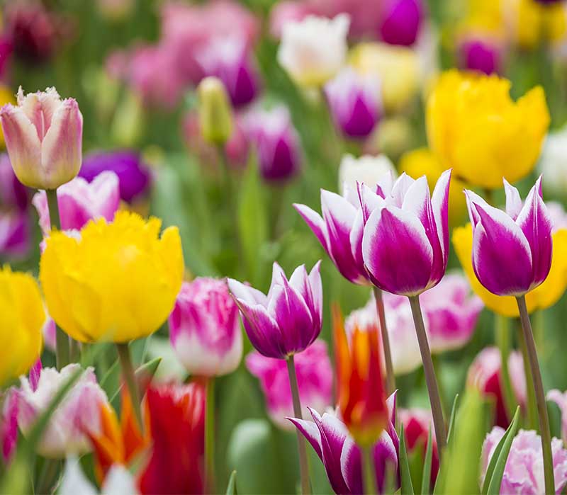Jeder Mensch hat Farben, die ihm besonders zusagen. Nach Ihren Vorlieben können Sie sich bei der Auswahl der Pflanzen richten. Dabei sollte man aber bedenken, dass jede Farbe eine bestimmte Wirkung erzielt. So wirken warme Rottöne optisch verkürzend, während kühle Blautöne ihre Umgebung weitläufiger erscheinen lassen. Auch die Größe der Pflanzen spielt eine Rolle bei der Raumwirkung. Am besten setzen Sie große Pflanzen nach hinten. Ob Sie sich nun für die warmen oder kalten Farben entschieden haben: Für beide gibt es Ergänzungen aus passenden Farbfamilien. Viele Zwiebelpflanzen gibt es in verschiedenen Farbtönen, sodass Sie das Beet mit nur einer Pflanzenart oder -sorte gestalten können, ohne dass es langweilig wirkt. Ein besonderer Hingucker sind auch kunterbunte Blüten, zum Beispiel von Papageien- oder Viridiflora-Tulpen. Am besten machen Sie sich einen Pflanzplan und wählen dabei gleich eine passende Beetumrandung.